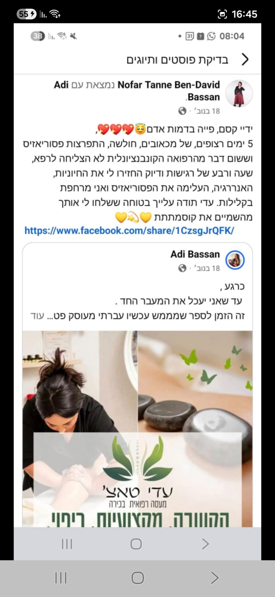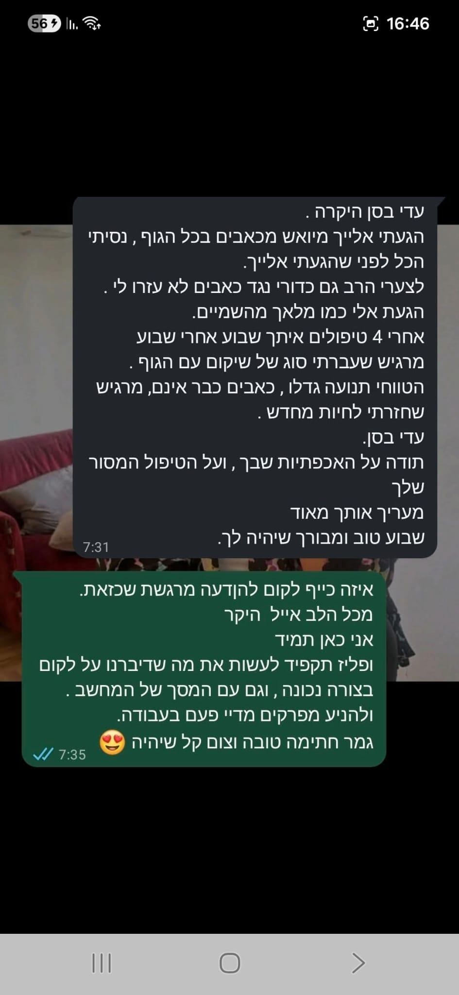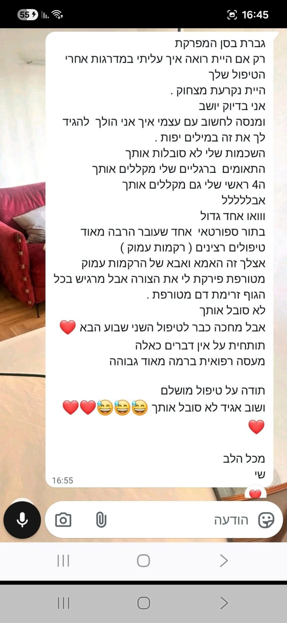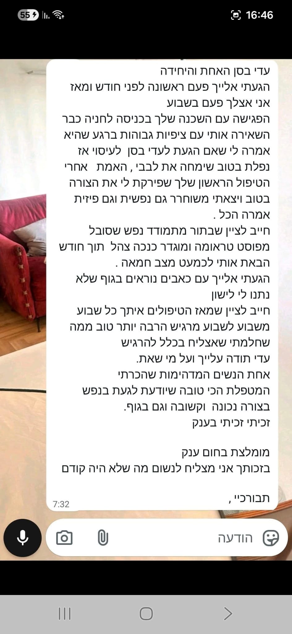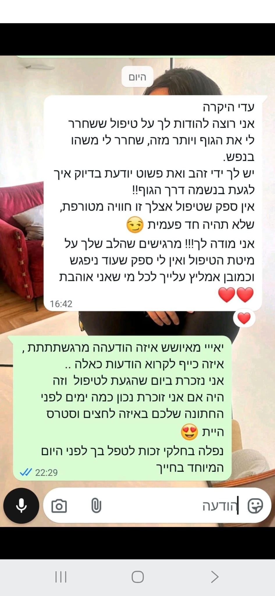 הקשבה. מקצועיות. ריפוי. עיסוי רפואי המשלב ניסיון עשיר עם אהבה אמיתית לתהליך הריפוי של גוף ונפש